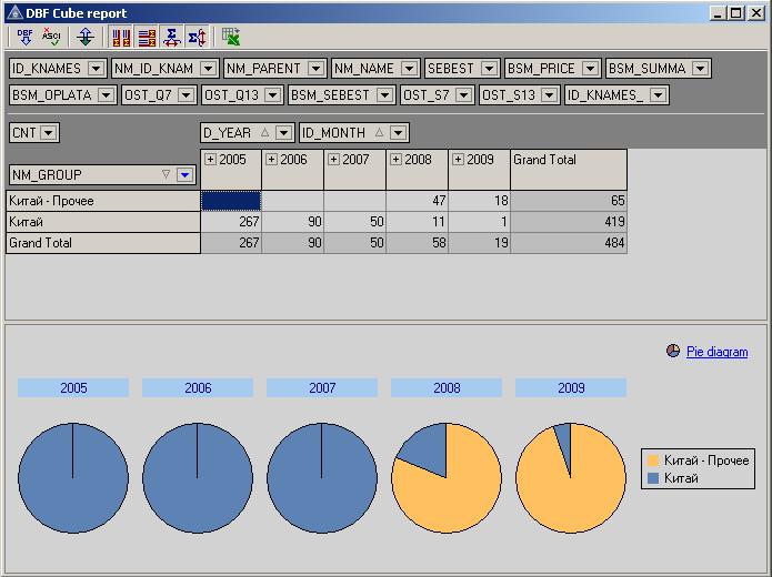 Модуль позволяет строить сводную таблицу по указанному DBF файлу. Так же строиться график по данным таблицы. После построения, таблицу можно сохранить в виде электронной таблицы Excel. На данным момент графики в эксполтируемую таблицу не сохнаняются.